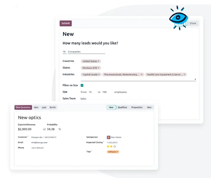 Capture leads qualificados por meio de visitas ao site, campanhas de marketing, e-mails, registros de eventos e outras fontes.